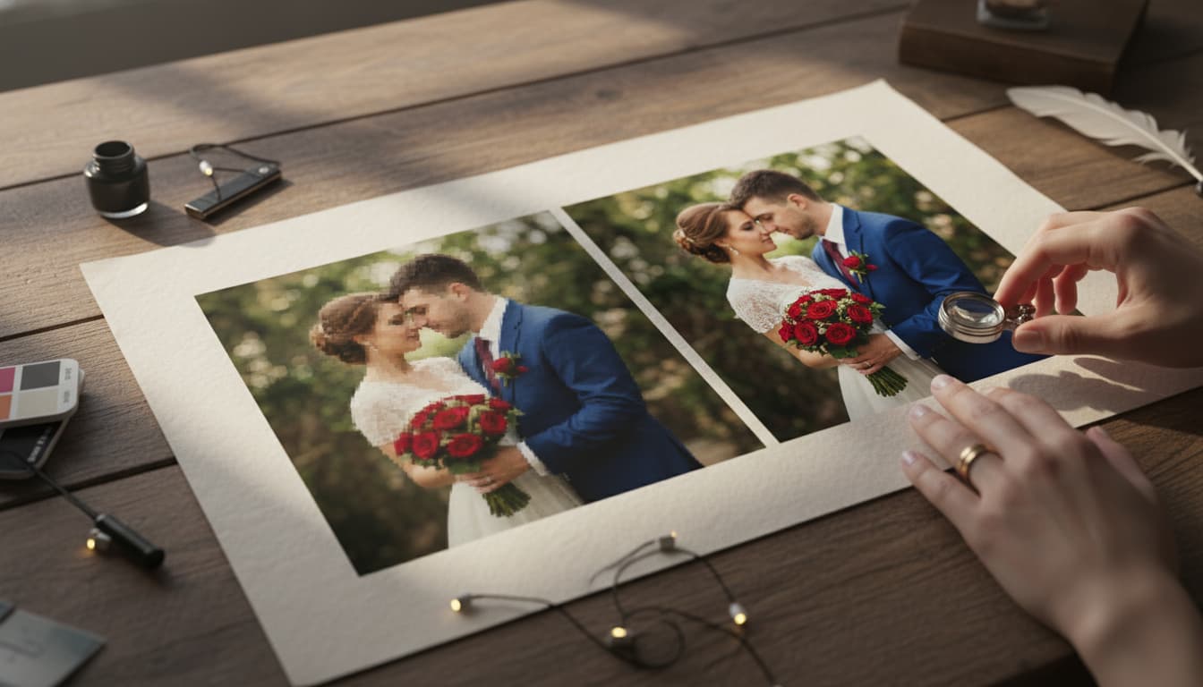 Tuy nhiên, không phải bức ảnh cưới nào dù rất đẹp khi xem trên điện thoại cũng phù hợp để in lên thiệp. Nếu chọn sai bố cục, sai màu sắc hoặc độ phân giải thấp, thiệp cưới của bạn có thể bị vỡ nét, chìm chữ và kém sang trọng.