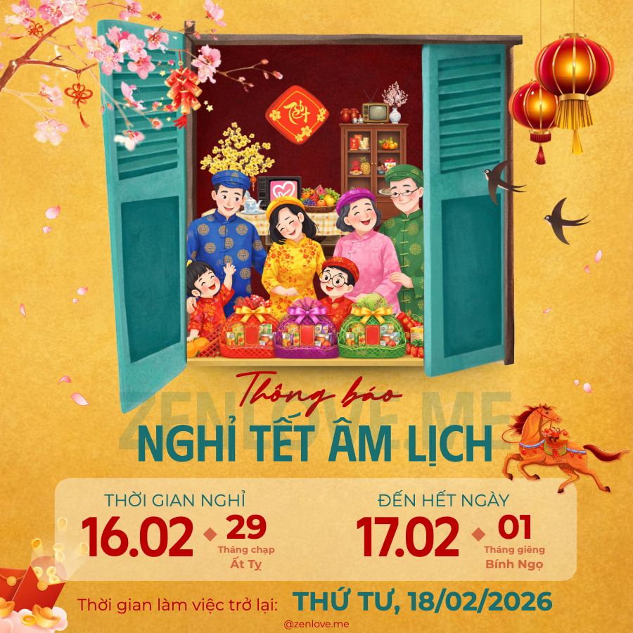 Zenlove sẽ tạm nghỉ các hoạt động hỗ trợ trực tiếp và vận hành kỹ thuật trong thời gian ngắn để đội ngũ nhân sự đón Tết cùng gia đình: